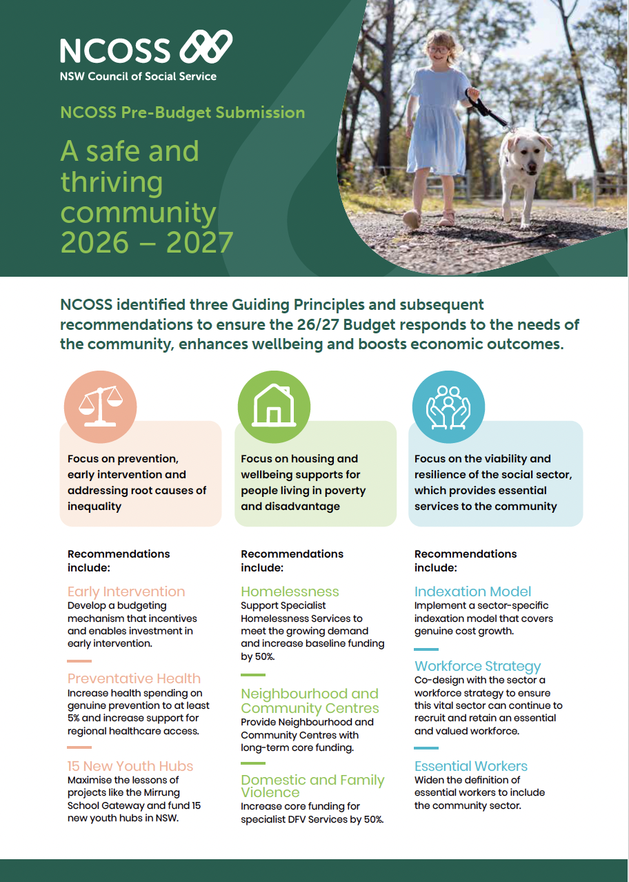NCOSS has submitted its Pre-Budget Submission for the 2026-27 NSW Budget.